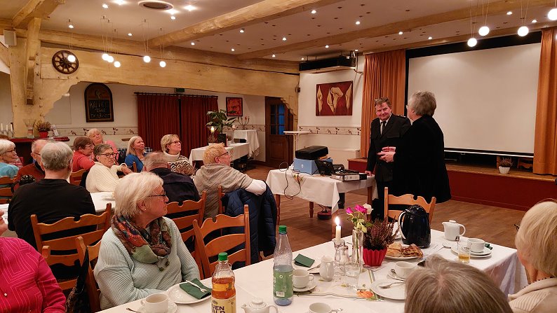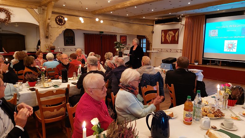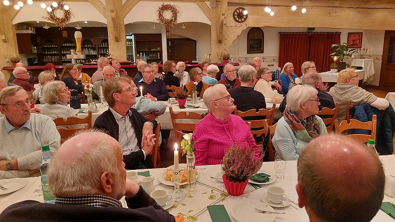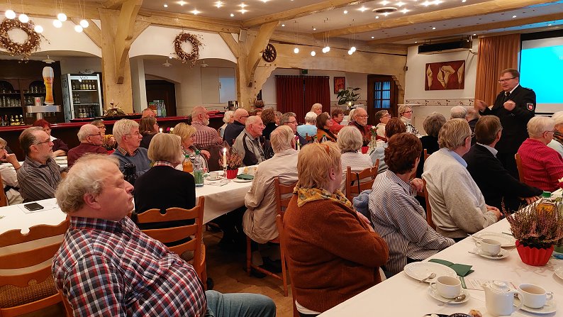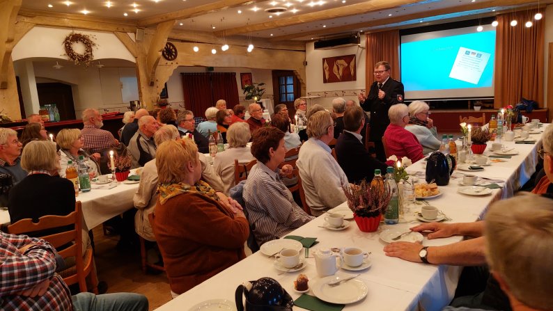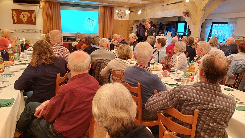 Ein besonderer Programmpunkt war der Vortrag von Kommissar Dieter Wellbrock von der Polizei Bremervörde. In seinem gut verständlichen und praxisnahen Beitrag ging er auf verschiedene Formen der Kriminalprävention ein. Wellbrock warnte eindringlich vor den Gefahren von Internetbetrug, erläuterte typische Maschen von Taschendieben und informierte über sogenannte Schockanrufe, bei denen Betrüger versuchen, vornehmlich ältere Menschen zu verunsichern und zur Herausgabe von Geld zu bewegen. Mit anschaulichen Praxisbeispielen und konkreten Verhaltenstipps sensibilisierte er das aufmerksame Publikum für mögliche Risiken im Alltag. Zudem wurde auch gezielt auf die Fragen der Anwesenden eingegangen.