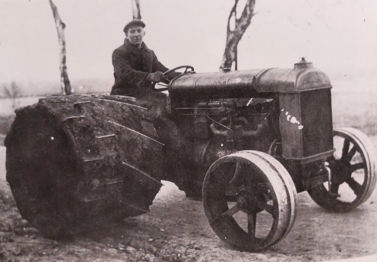 Carl Heins auf seinem mit Petrolium angetriebenen Fordson-Trecker um 1930