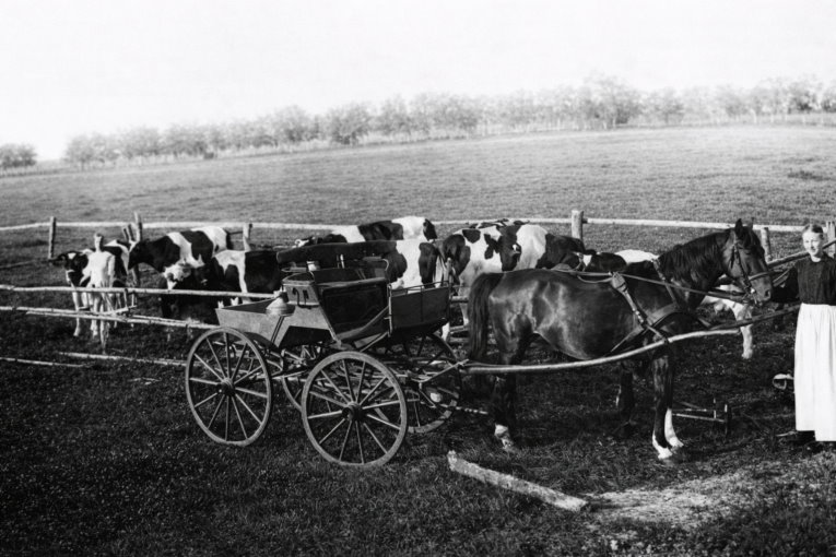Tipke Drewes >Lüttens< beim Melken um 1920